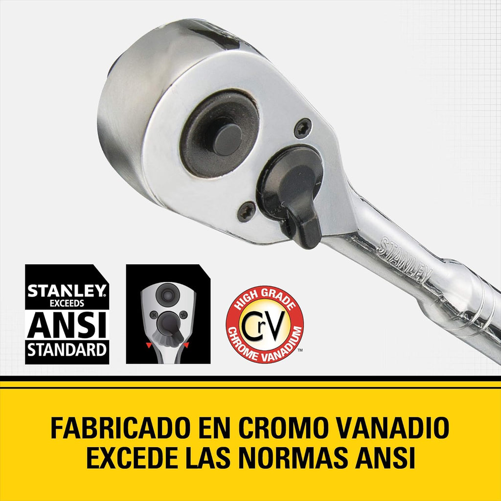 The Stanley R99-150LA is a comprehensive 150-piece mechanics tool set designed for both professional and enthusiast automotive work. It includes a wide range of sockets, wrenches, ratchets, and accessories in both metric and SAE sizes, housed in a rugged carry case. The Stanley R99-150LA is a comprehensive 150-piece mechanics tool set designed for both professional and enthusiast automotive work. It includes a wide range of sockets, wrenches, ratchets, and accessories in both metric and SAE sizes, housed in a rugged carry case. Made from chrome vanadium steel with nickel-chrome plating to resist corrosion, this kit aims to deliver durability, precision, and a versatile selection of tools for many mechanical and maintenance tasks.