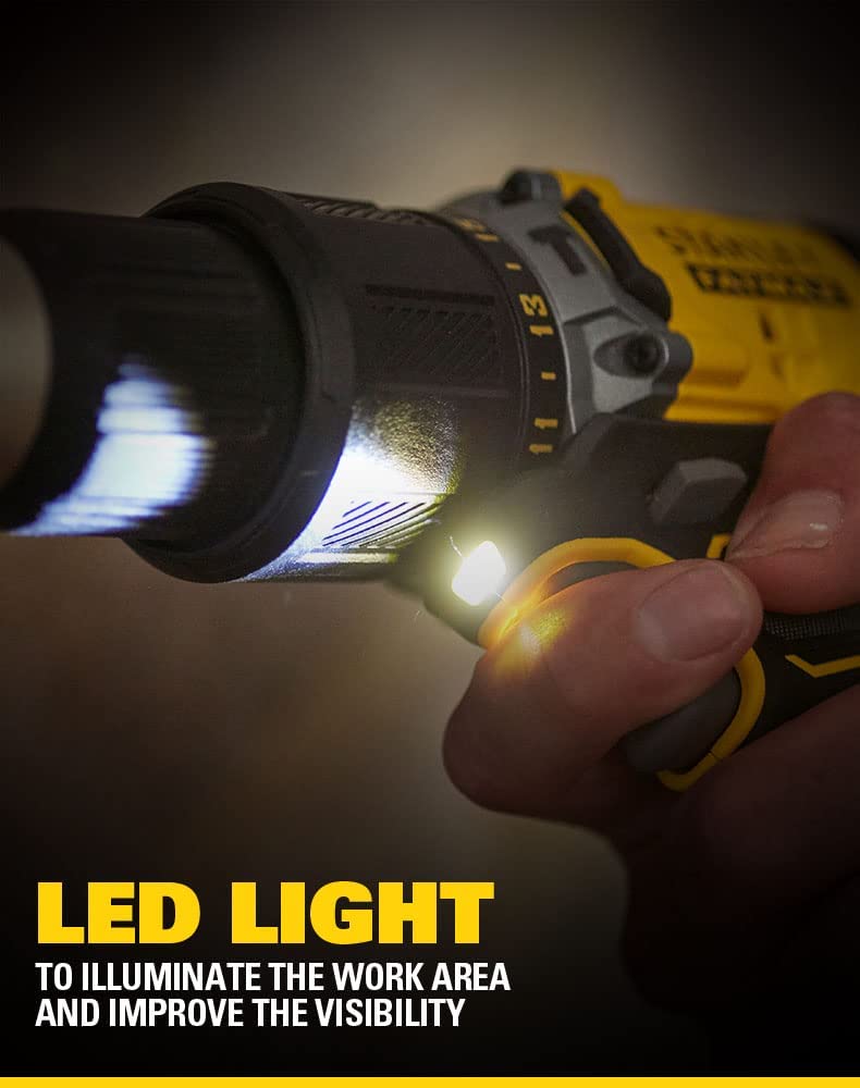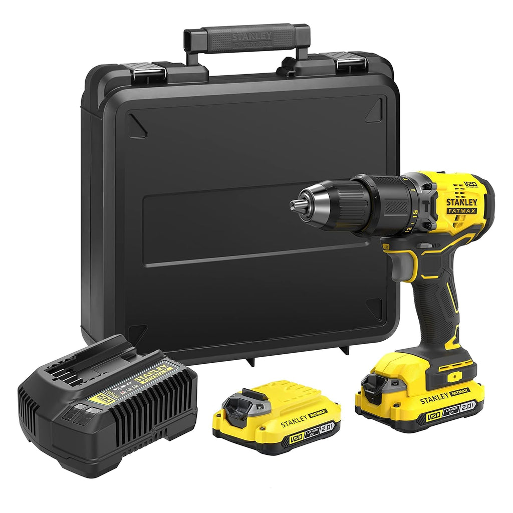 Stanley SBD715D2K 20V STANLEY FATMAX V20 Hammer Drill with 2 x 2.0Ah Lithium-Ion Battery and Kit Box is new and improved battery technology, with no memory effect and minimal self-discharge. The V20 Lithium-Ion Battery Pack is ready to work with an integral battery status charge indicator for convenient monitoring of battery charge level whenever you are and wherever work takes you.