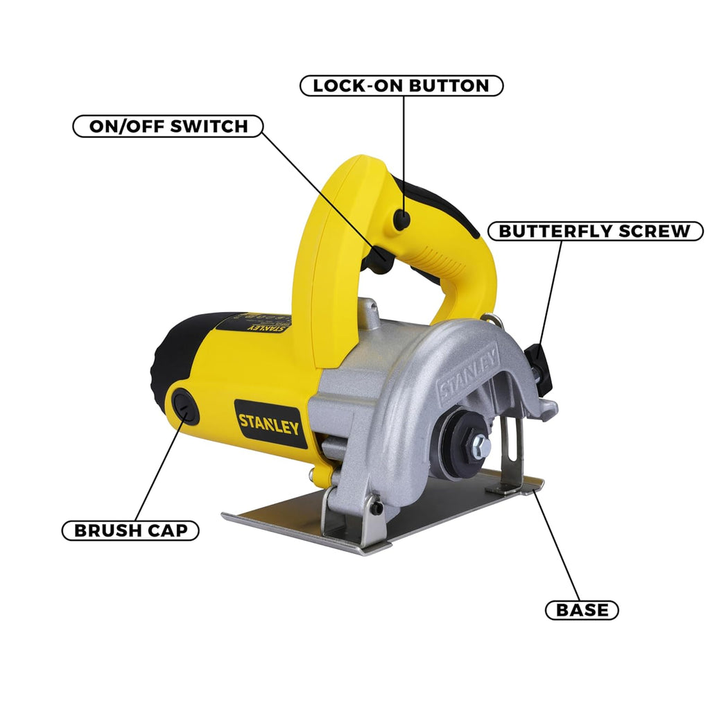 Stanley STSP125 is a professional circular saw that is ergonomically designed for comfortable grip and low vibration for use in various cutting applications especially for wood and tile. The saw has a powerful 1320W motor that is durable and efficient. The saw gives a smooth cut in wood and stone. The trigger switch is placed ergonomically for easy tool operation. This saw can accommodate 125mm 5", 110mm 4" and smaller sizes of saw blades. The depth of the blade can be varied as per the depth of cut required.